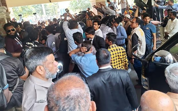 বরিশালে এজলাসে হট্টগোলের ঘটনায় আইনজীবী সমিতির সভাপতি আটক, আদালত চত্বরে বিক্ষোভ বরিশালে আদালতের এজলাসে ঢুকে হট্টগোল, বেঞ্চে ধাক্কাধাক্কি ও ভাঙচুরের ঘটনায় জেলা আইনজীবী সমিতির সভাপতি সাদিকুর রহমান (লিংকন)কে আটক করেছে